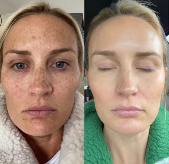 "This product is amazing! I've seen a noticeable improvement in my skin in such a short time. My dark spots are gradually fading, and I feel so much more confident." 💛— Claire M.